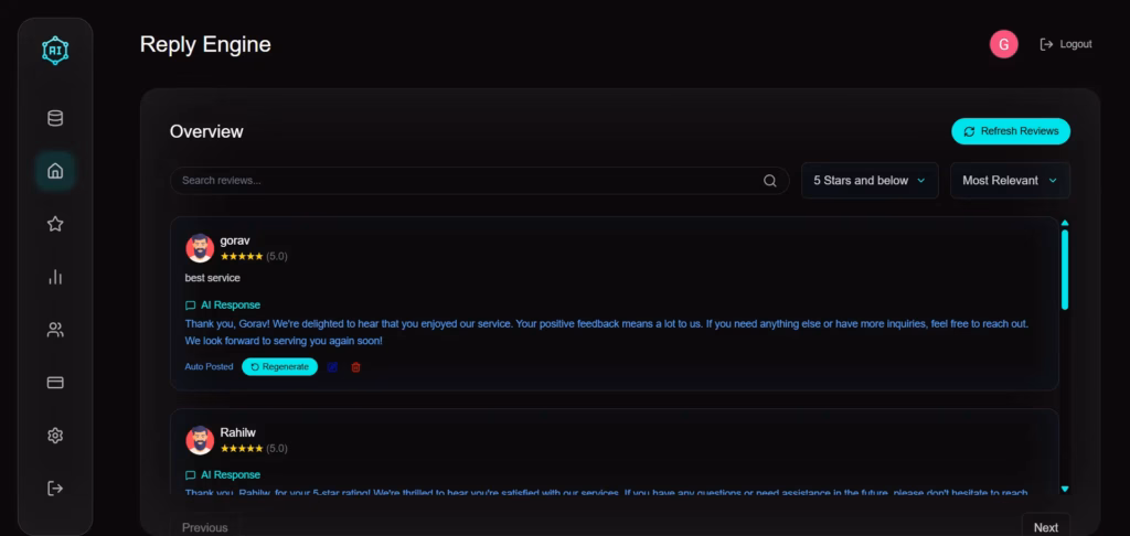 A.I Google ReplyEngine is an intelligent platform built to automatically read, understand, and reply to Google business reviews using advanced AI. It helps businesses improve online reputation, respond faster to customer feedback, and maintain consistent communication across all reviews—positive, neutral, or negative.