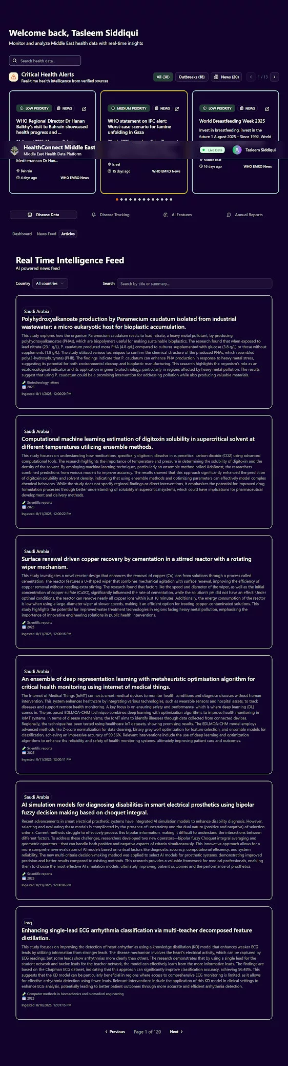 A comprehensive healthcare ecosystem connecting patients, doctors, and medical service providers. Featuring AI-driven insights, secure patient management, and streamlined clinical workflows tailored for the Middle East region.